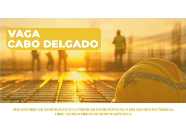 Uma prestigiada empresa de Construção Civil está a recrutar 1 (um) Técnico Médio de Construção Civil para integrar a sua equipa em Cabo Delgado.