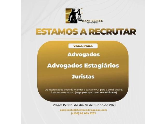 Vagas – (Advogados, Advogados estagiários e Juristas) (Ilda Tembe Advogados)