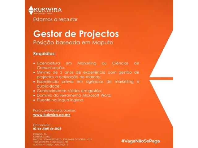 Para candidatar-se e ter mais informações, por favor aceda ao link abaixo:: https://kukwira.co.mz/#/