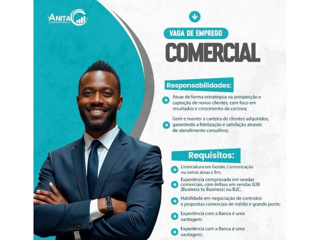 A Anita Corporation pretende recrutar para o seu quadro de pessoal um (1) Comercial.