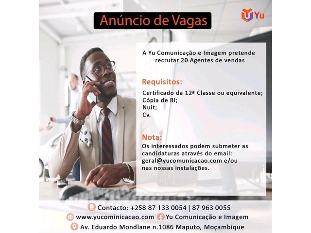 Vagas Para (20) Agentes de Vendas (m/f) (Yu comunicação e Imagem)