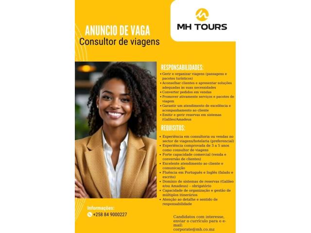 Estamos à procura de um(a) Consultor(a) de Viagens para integrar a equipa da MH Tours, em Maputo.