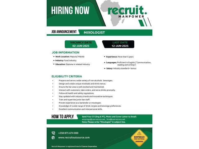 New Vacancy: MIXOLOGIST