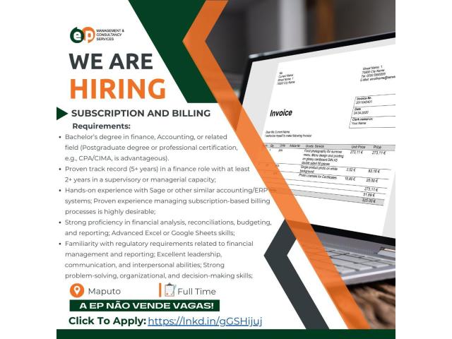 Link de Candidatura: https://epmcsdatabase.com/vagas/subscription-and-billing