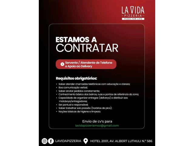 Servente / Atendente de Telefone e Apoio ao Delivery