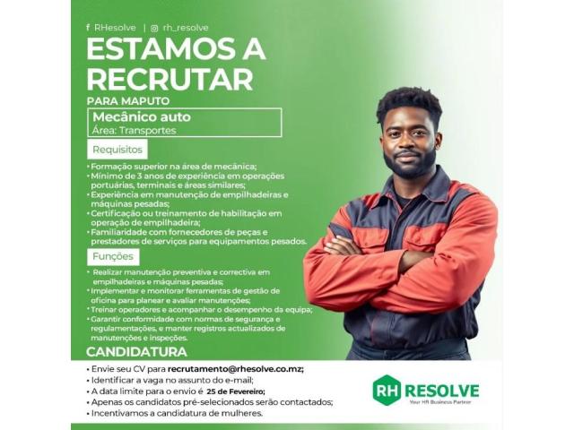 A Rh Resolve está em busca de profissional qualificado Para ocupar o cargo de Mecânico auto baseado em Maputo.